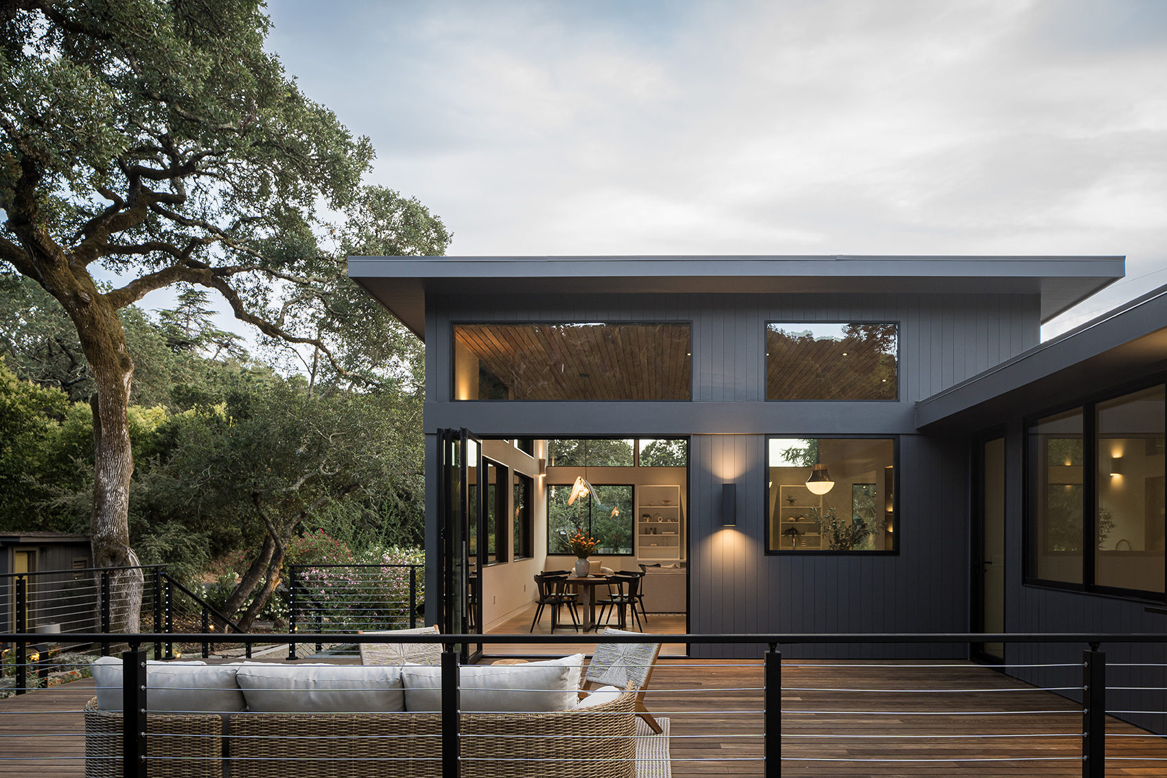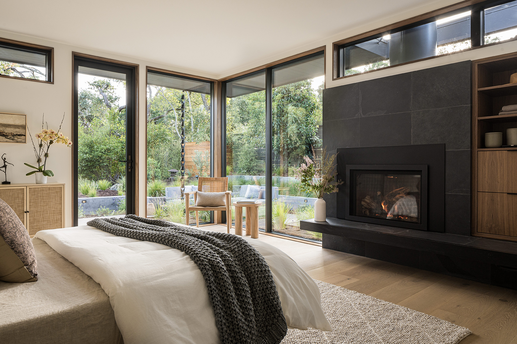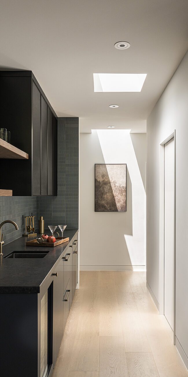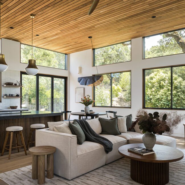 This reimagined Napa family home involved a year-long collaboration and pre-construction effort that resulted in the total transformation of a Mid Century residence. Initially conceived as a complete interior demolition, the project evolved into a near ground-up reconstruction, necessitating the underpinning of existing foundations and the pouring of new ones to support expanded areas. The completed home seamlessly integrates timeless design elements with modern performance, featuring custom wall-wash skylights, flush baseboard details, and a fire-resilient exterior clad with WUI-approved vertical nickel-gap siding. Our in-house team meticulously designed custom cabinetry and millwork throughout, ensuring both seamless function and aesthetic coherence.