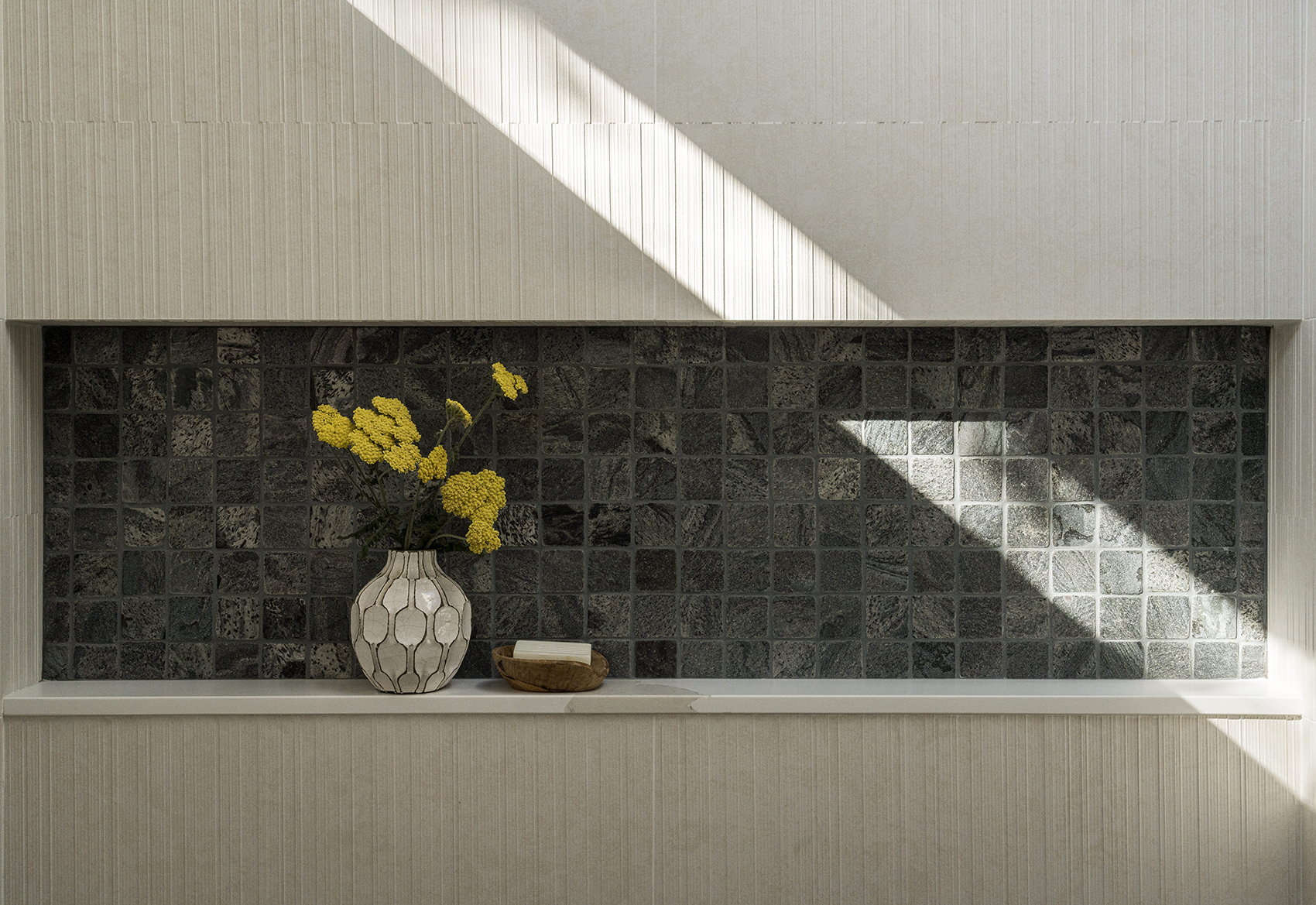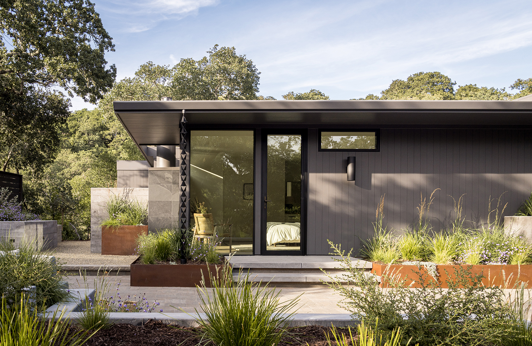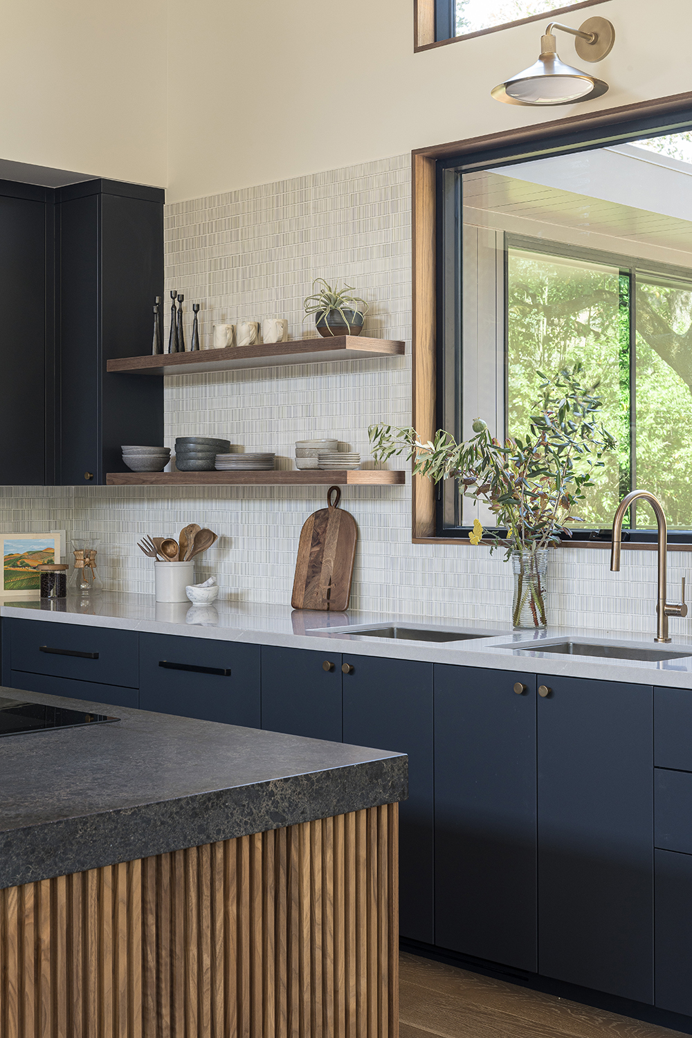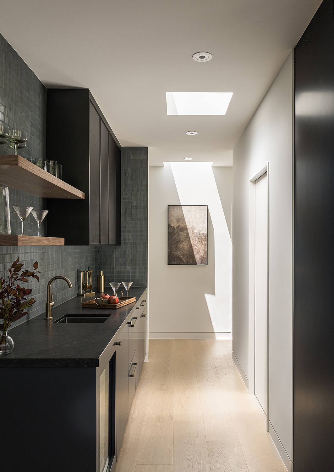This reimagined Napa family home involved a year-long collaboration and pre-construction effort that resulted in the total transformation of a Mid Century residence. Initially conceived as a complete interior demolition, the project evolved into a near ground-up reconstruction, necessitating the underpinning of existing foundations and the pouring of new ones to support expanded areas. The completed home seamlessly integrates timeless design elements with modern performance, featuring custom wall-wash skylights, flush baseboard details, and a fire-resilient exterior clad with WUI-approved vertical nickel-gap siding. Our in-house team meticulously designed custom cabinetry and millwork throughout, ensuring both seamless function and aesthetic coherence.
